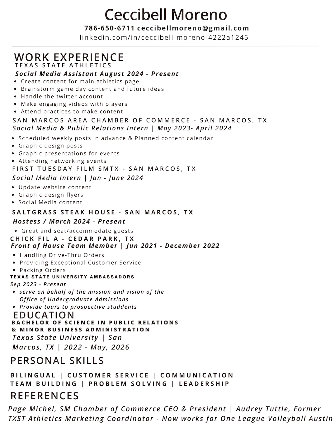 Below is my resume, highlighting my experience in public relations, social media, and sports content creation.